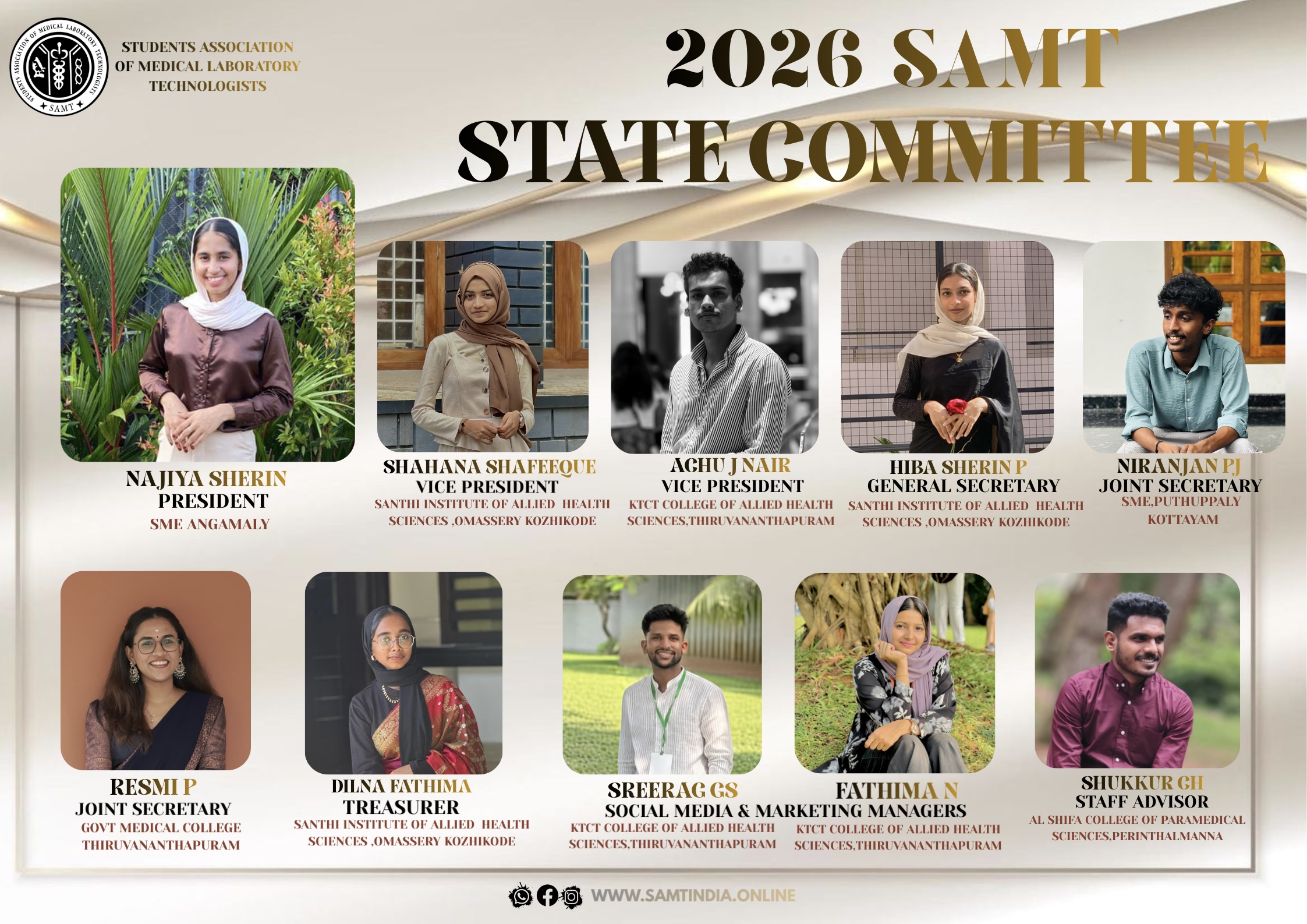 The association aims in the academic standardization of the students career by conducting programs like seminars, group discussions, workshops, etc SAMT also aims for the public awareness about the B.Sc MLT course and its opportunities